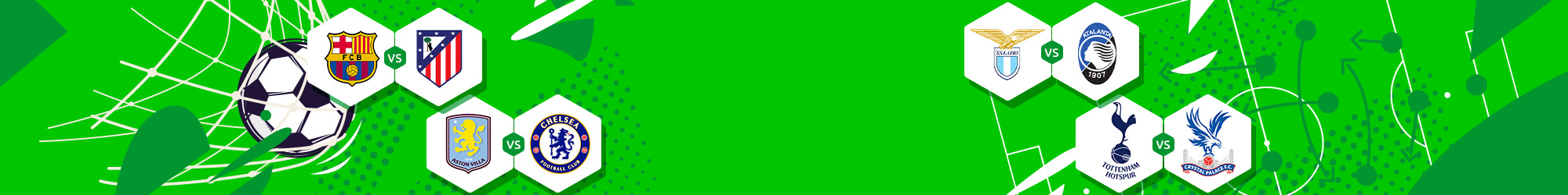 Aproveite os melhores jogos das ligas e copas europeias desta semana, incluindo Tottenham x Crystal Palace, Lazio x Atalanta, Hamburger SV x Bayer Leverkusen, Barcelona x Atl. Madrid, Sporting CP x FC Porto e outros, e ainda ganhe um Bônus Recarga de 30% até R$ 1000.