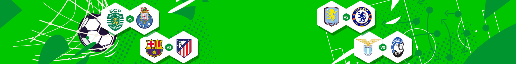 Aproveite os melhores momentos dos campeonatos e taças europeias desta semana, incluindo Tottenham x Crystal Palace, Lazio x Atalanta, Hamburger SV x Bayer Leverkusen, Barcelona x Atl. Madrid, Sporting CP x FC Porto e outros, e ainda ganhe um Bónus Reload de 30% até 200€.