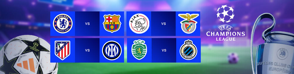 Assista aos confrontos emocionantes — Chelsea - FC Barcelona, Atlético de Madrid - Internazionale, Ajax - Benfica, Sporting CP - Club Brugge — e tenha ainda mais tranquilidade com uma delicioso Bónus Risk-Free de 50% até 100€!